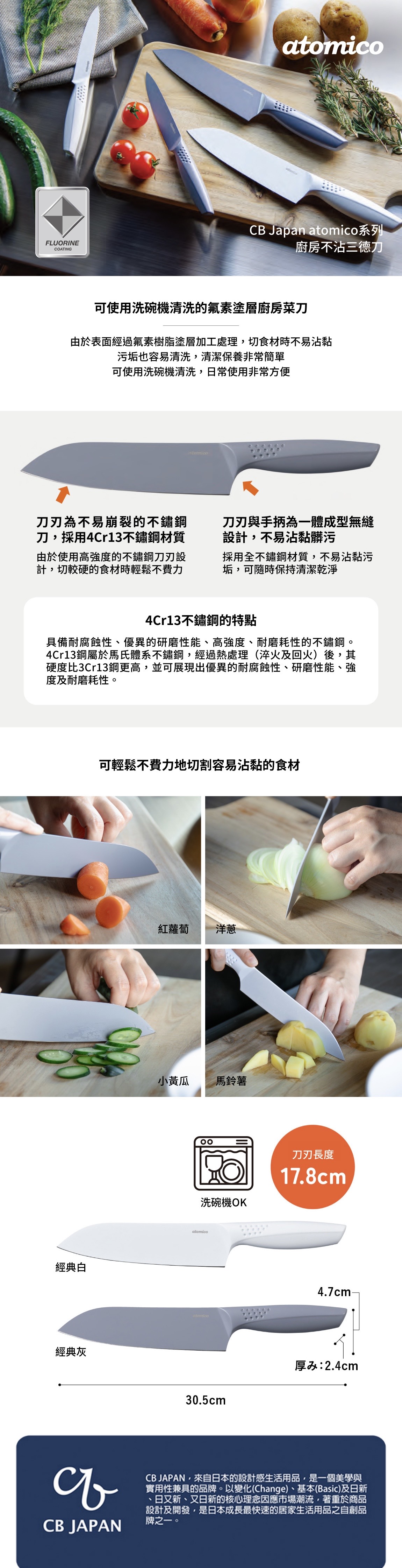 atomico系列 廚房不沾三德刀 經典白